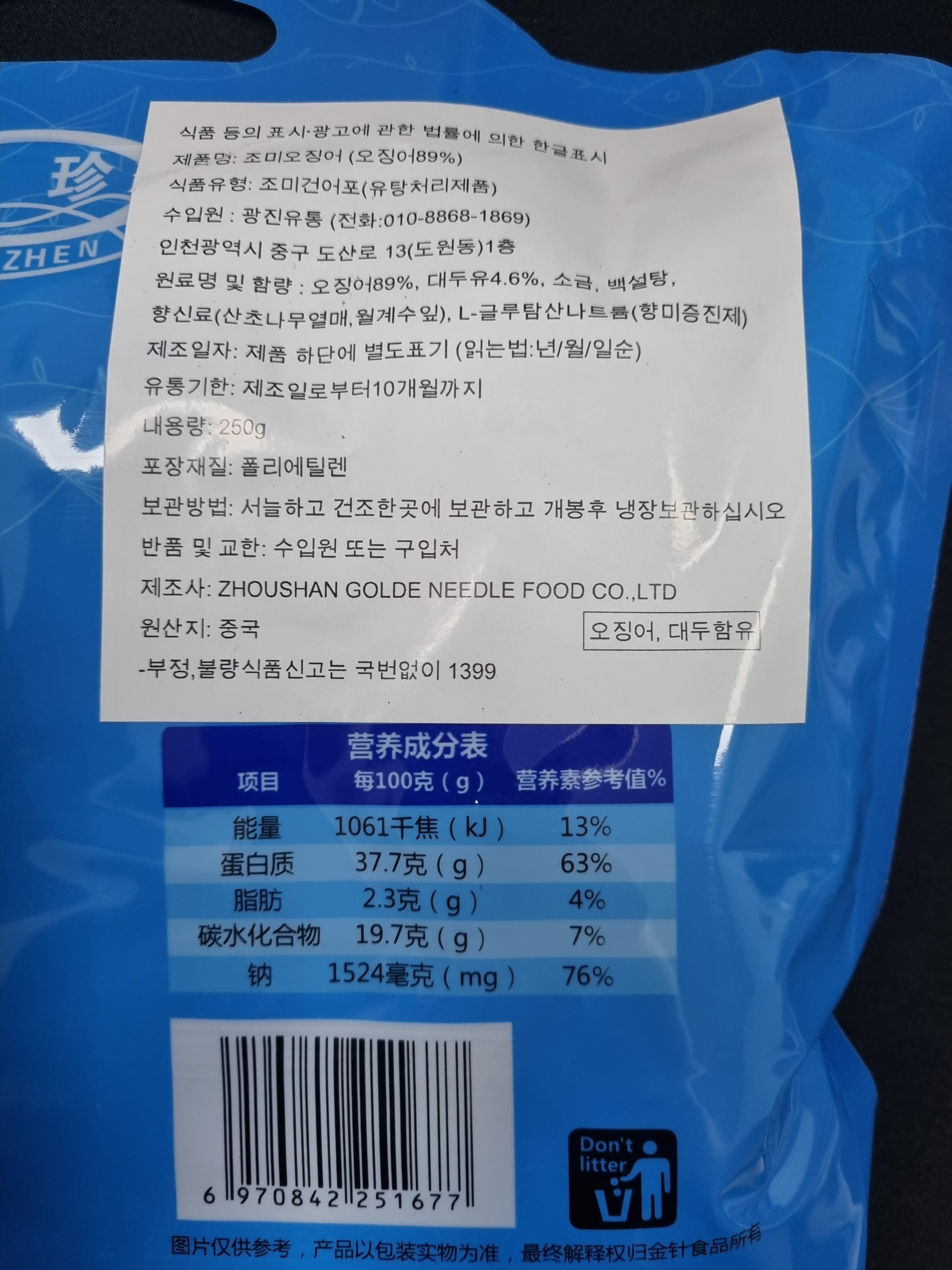 하하하미 미니통오징어 뒷면이다.